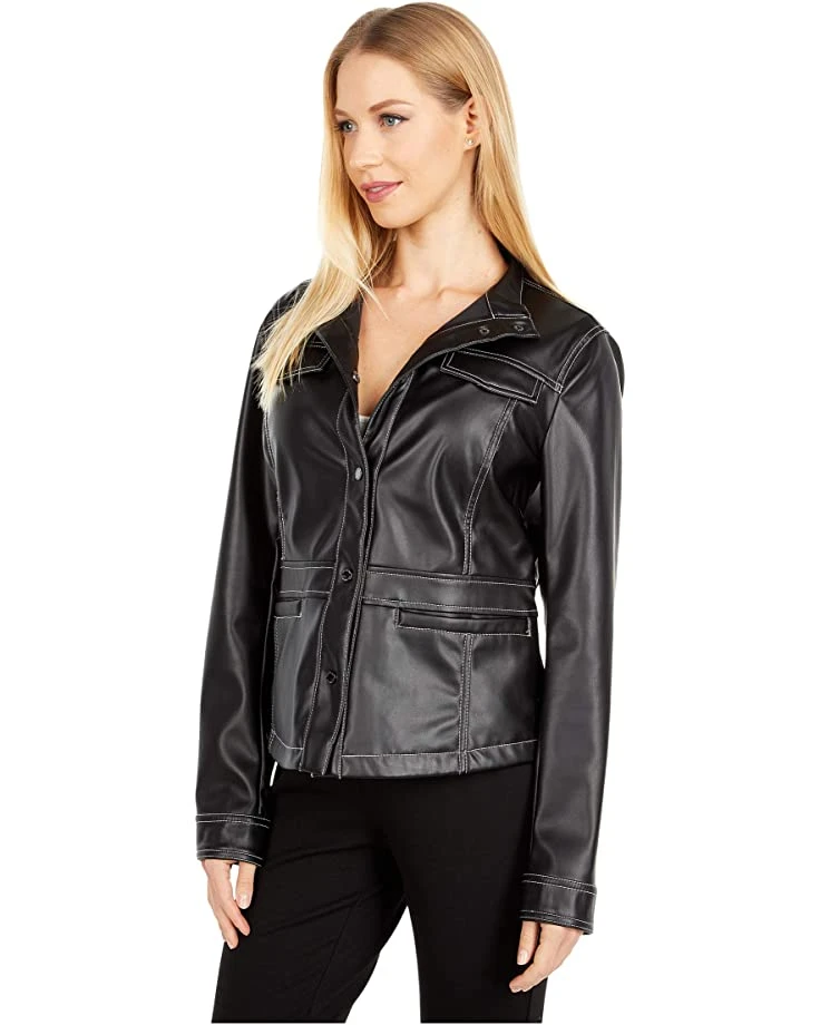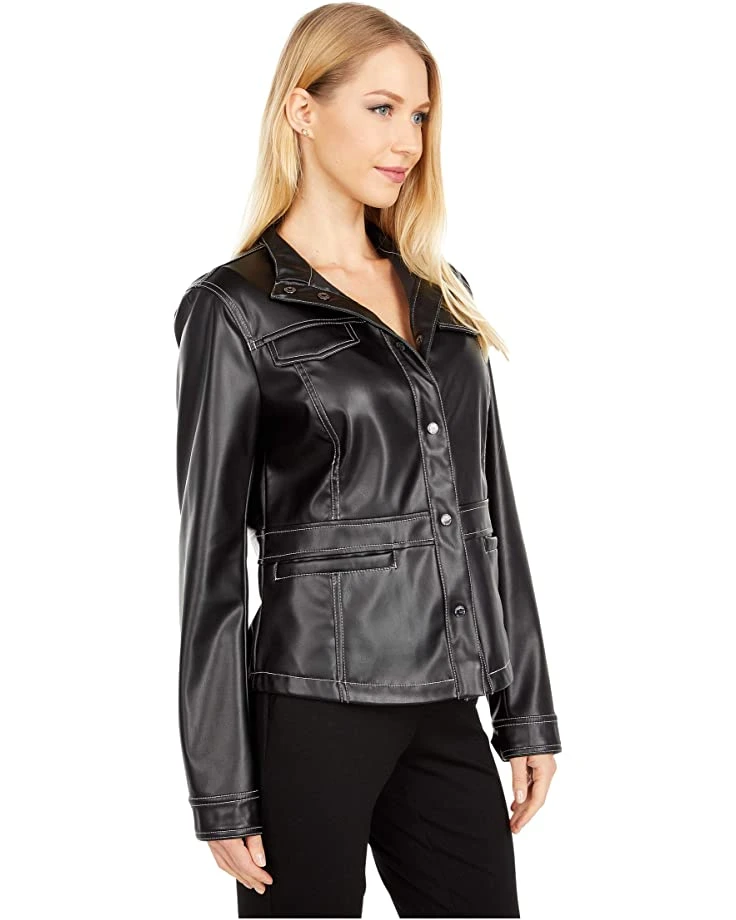 - The Sam Edelman® Faux Leather Snap Front Jacket is sure to become a closet staple. The contemporary jacket is crafted from a faux-leather in a snap-front design.