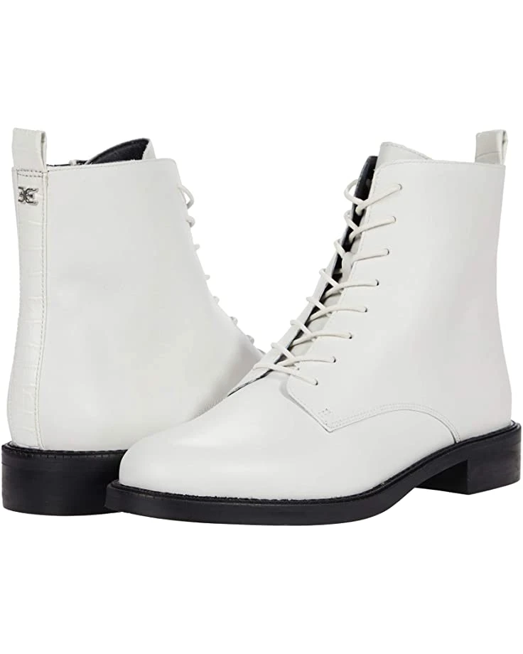 - The Sam Edelman® Nina boot features a leather and textile exterior, lace-up and side zip closure, rounded-toe silhouette, and ankle pull-tab.